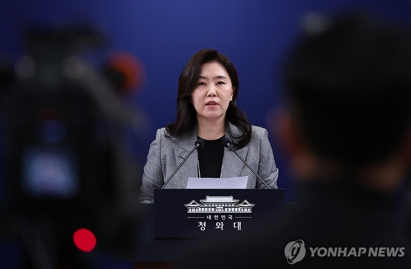 | 강유정 대변인이 22일 청와대 춘추관에서 캄보디아 스캠 조직 피의자 송환 관련 브리핑을 하고 있다. (사진=연합뉴스) |