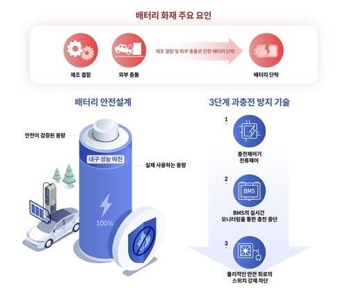 또 만일 배터리에서 문제가 생기더라도 배터리의 두뇌 역할을 하는 배터리관리시스템(BMS)이 과충전을 차단하고, 제어한다고 덧붙였다.