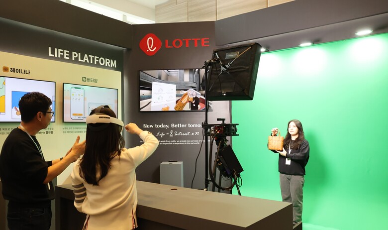 롯데지주는 지난해에 이어 이번 주총에서도 신사업 전시관을 설치해 주주들에게 신사업 체험 기회를 제공했다.