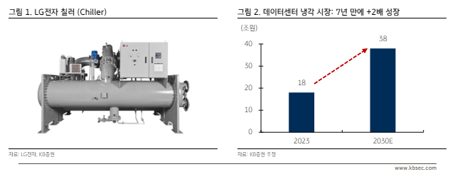 LG전자의 냉난방공조(HVAC) 매출은 2023년 4.2조원에서 2030년 8.5조원으로 7년 만에 2배 성장할 전망이다. 이는 AI 데이터센터 전력 사용의 50%가 냉각용 전력에 사용되어 전력 효율화 중요성이 부각되며 칠러 (Chiller)를 포함한 냉각 시스템 솔루션을 확보하고 있는 LG전자의 수혜가 기대된다는 판단이다.