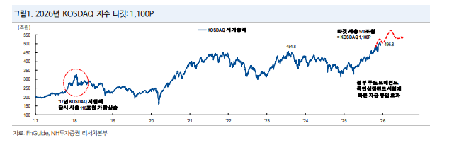 나정환 NH투자증권 연구원은 "코스닥 활성화 정책 기대감에 코스닥 지수는 상승 흐름을 보이고 있으나, 코스피 지수와의 수익률 차이는 여전히 31.6%p 수준"이라며 "향후 정부의 상장·퇴출 구조 개편과 기관투자자 유입 정책이 본격화되면서 코스닥 지수의 추가 상승 여력이 확대될 것"이라고 전망했다.