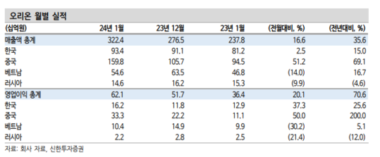 1월 국가별 전년대비 매출증감률은 명절 시점 차이로 대체로 양호했다는 평가다. 전반적인 원가 부담 속에서도 생산량 증가와 비용 효율화 노력에 힘입어 영업이익도 늘었다.