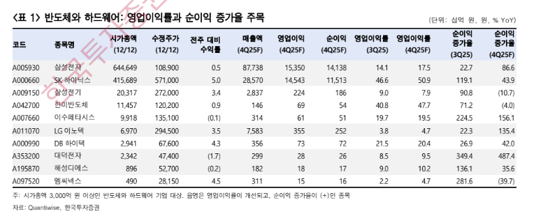 특히, 반도체와 하드웨어 종목은 앞으로 수익성 확보가 중요해지는 구간에 놓여있다.