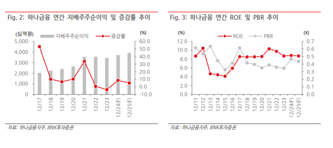 김인 BNK투자증권 연구원은 "2023년 은행주 내 가장 양호한 실적 실현에 이어 2024년 ELS 손실부담 1800억원과 상생금융비용 추가 반영 1500억원, 부동산PF 보수적 선반영 1700억원에도 전년도 4770억원의 선제적 충당금적립 소멸에 따라 대손충담금전입이 큰 폭으로 감소했다"며 "지배주주순익이 전년 대비 8.6% 증가한 3.7조원으로 최대 실적이 예상된다"고 판단했다.