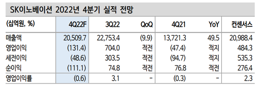 | SK이노베이션 작년 4분기 실적전망. 자료=신한투자증권 |