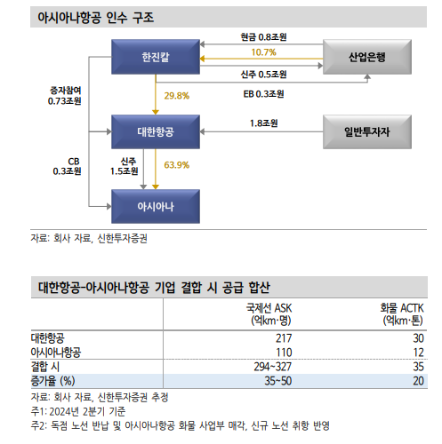매출 덩치를 키웠지만 비용을 커팅하려면 시간이 걸릴 예정으로 해외 항공사 합병 사례처럼 초기 통합 비용이 예상된다. 구조 조정은 없다고 공언했기 때문에 인력 효율화에 따른 비용 절감 여력은 축소될 것으로 보인다. 이에 투자의견 매수와 목표주가 3만원을 유지했다.
