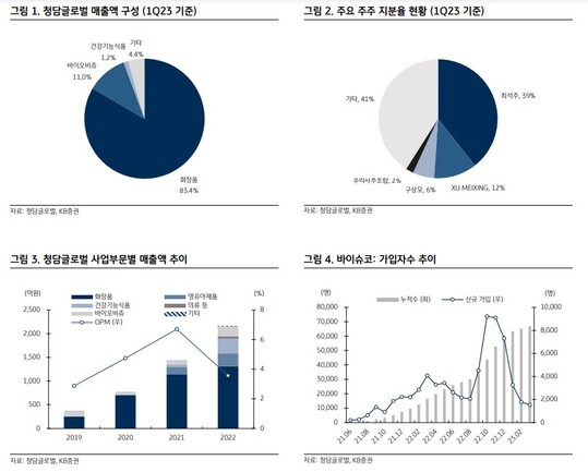 박신애 KB증권 연구원은 "올해 청담글로벌은 유통 부문의 거래처가 보다 다변화될 전망"이라며 "지난 2022년 9월에 Walmart China와 유통 계약을 체결한데 이어, 올해는 VIP.com과의 거래도 가시화될 것"이라고 전망했다.