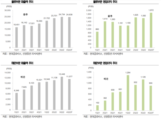 | 현대글로비스 해운 물류부문 실적 추이. 자료=신영증권 |