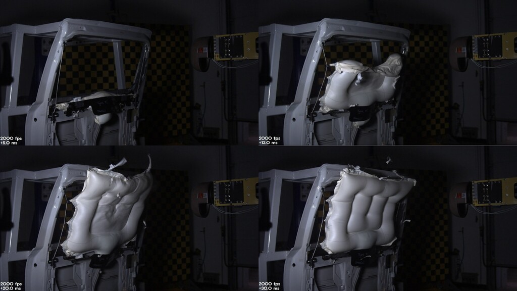 이 에어백은 사고 발생 시 0.03초 만에 팽창되며 와이어를 따라 수직으로 상승하는 혁신적인 구조를 갖췄다.