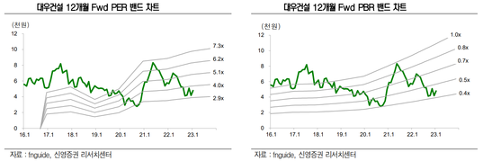 | 대우건설 12개월 FWd PBR 밴드 차트. 자료=신영증권 |