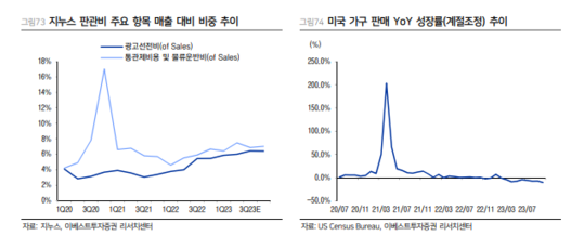 오린아 연구원은 "지누스는 원가 부담이 대체로 완화되었기 때문에 매출액 회복 시 이익 개선 폭은 기대되나, 과거와 달리 경쟁 강도가 다소 높아진 영업환경 변화가 있다"며 4분기 영업이익 예상치를 79억원으로 하향 조정했다.