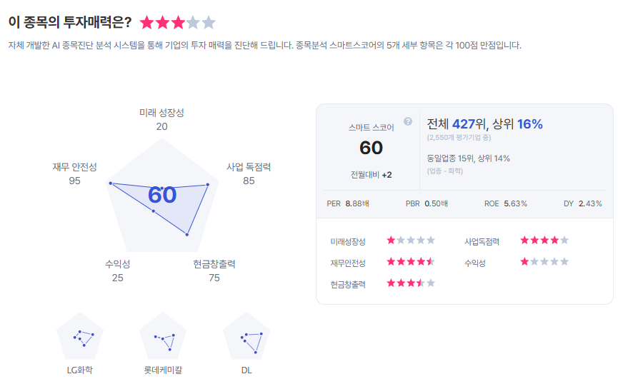 | 금호석유화학 종목진단 (출처=초이스스탁) |