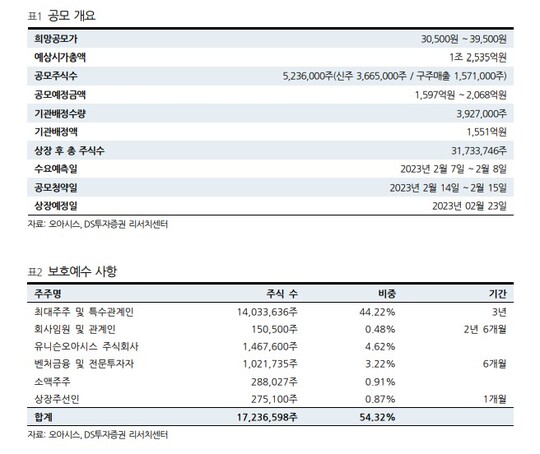오아시스의 총 공모예정 주식수는 523만6000주로 희망 공모가밴드 상단 기준 공모예정금액은 2068억원이다. 70% 신주발행이다. 구주매출 대상은 최대주주인 ㈜지어소프트이며 매출 주식수는 157만1000주다.