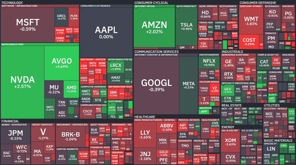 브로드컴은 4% 급등했고, 엔비디아와 AMD도 각각 2% 와 3% 올랐습니다.