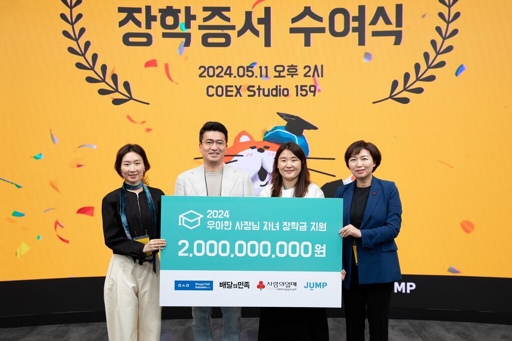 이국환 우아한형제들 대표는 "배민은 장학금 외에도 구성원들의 멘토링을 통해 학생들의 진로 고민을 함께 나누고 있다"며 "배민과 외식업주, 자녀들이 함께 성장하는 한 해가 되기를 기원한다"고 설명했다.