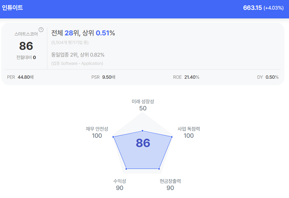 | 인튜이트 종목진단 (출처=초이스스탁) |
