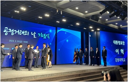 강원대학교에 따르면 이혁 법학전문대학원 교수가 지난 3월 31일 서울 여의도 중소기업중앙회에서 열린 '제22회 공정거래의 날' 기념식에서 공정거래제도 발전에 기여한 공로를 인정받아 대통령 표창을 수상했다.