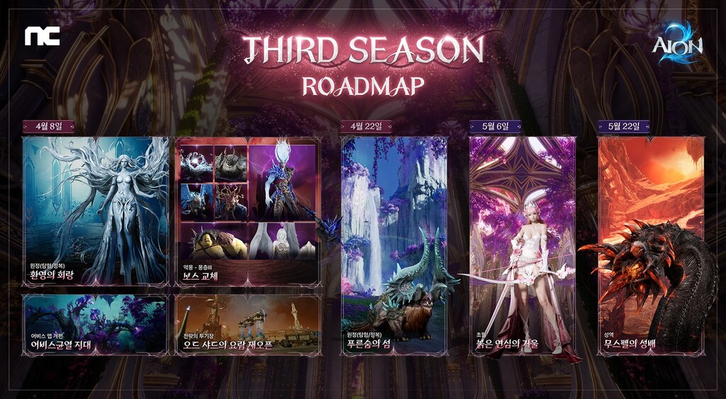 [알파경제=김영택 기자] 엔씨소프트가 다중접속역할수행게임(MMORPG) ‘아이온2’의 ‘시즌3’ 콘텐츠 로드맵을 1일 발표했다. 이번 업데이트는 오는 4월 8일부터 순차적으로 적용될 예정이다.