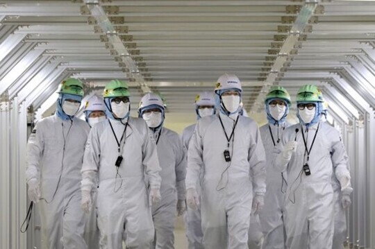 | 이재용 삼성전자 회장이 7일 삼성디스플레이 아산캠퍼스를 찾아 QD-OLED 생산라인을 둘러보고 있다. (사진=삼성전자) |