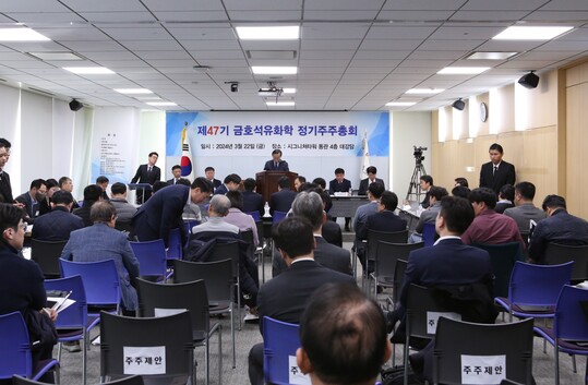 금호석화는 이번 주총에서 “절체절명의 위기를 맞은 석유화학업계의 현 상황에서 소모적 행위를 지속하기보다는 불황을 극복하고 수익성을 극대화해 진정한 주주가치 제고를 모색하는 고민이 필요하다”고 전했다. <자료제공=금호석화>