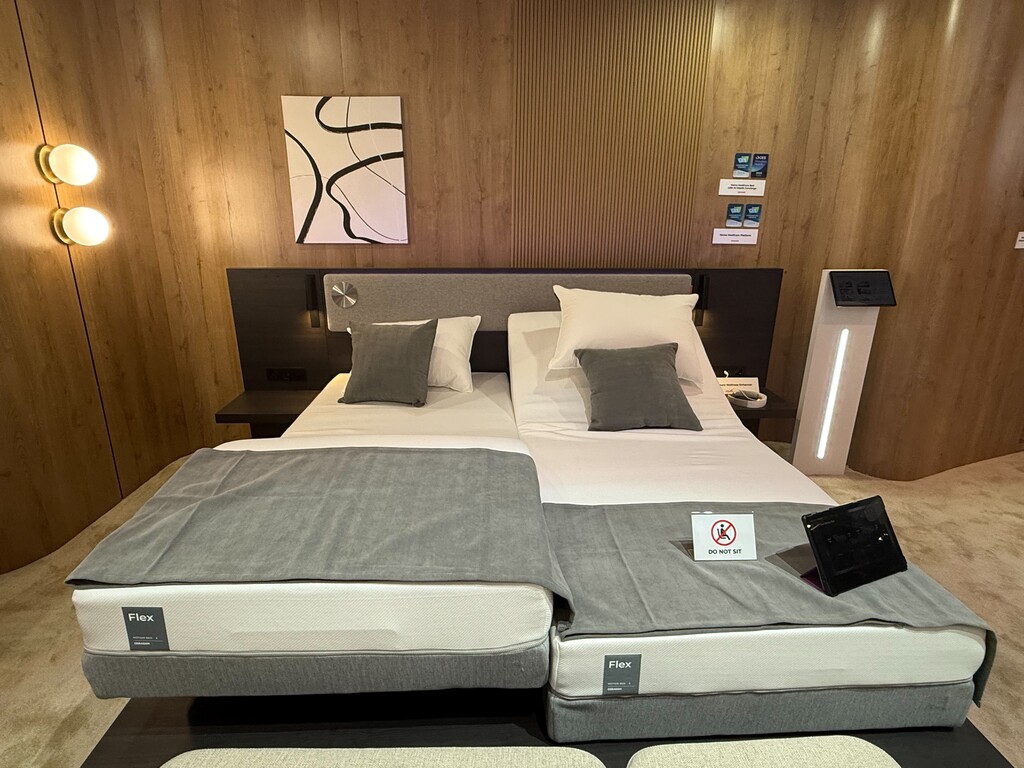 | 6일(현지시간) 라스베이거스 베네시안 컨벤션센터의 세라젬 부스에 AI 기술이 적용된 침대가 전시돼 있다. (사진=김지선 특파원) |