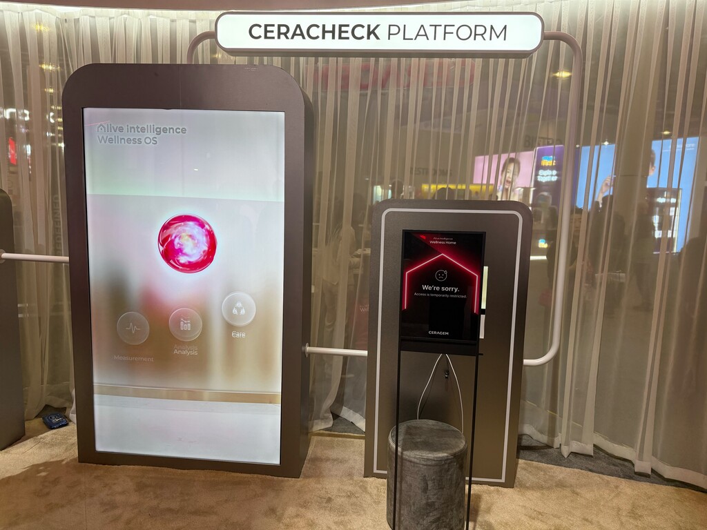 | 6일(현지시간) 라스베이거스 베네시안 컨벤션센터의 세라젬 부스에 전시된 세라체크 플랫폼의 모습. (사진=김지선 특파원) |