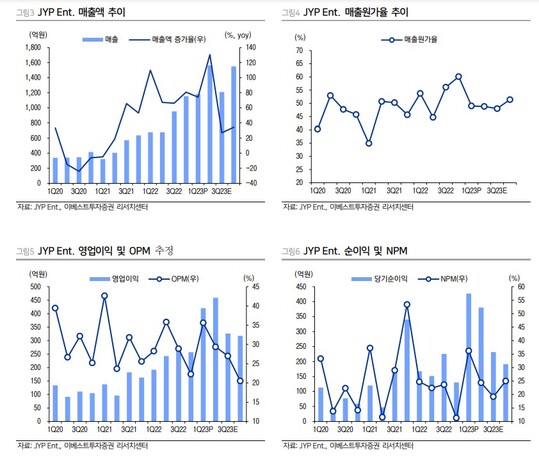 안진아 이베스트투자증권 연구원은 "2023년은 주력 아티스트 본격적인 글로벌 팬덤 확장이 외형성장으로 이어지는 가운데 걸·보이그룹 IP 기반 간접매출 확대 모멘텀이 이전과 다른 이익 레벨을 견인할 것"이라며 "피어 대비 안정적인 수익성 지속해 온 가운데 주력 IP 글로벌 팬덤 이익 가시화와 글로벌 신인그룹 데뷔(2~3팀) 등 안정적 고성장이 지속될 것"이라고 전망했다.