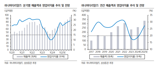 하나머티리얼즈의 경우, 현재 아산 2공장 신축을 통해 고객 수요에 선제적으로 대응할 수 있는 기반을 마련했으며, 추가 부지 또한 확보하고 있어 중장기적으로 보다 유연한 대응이 가능한 비즈니스 구조를 갖추고 있다.