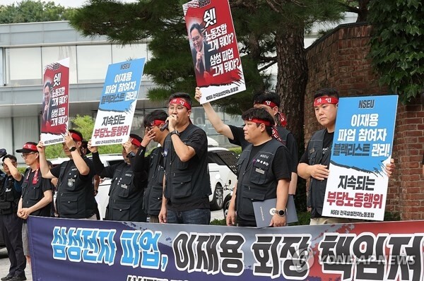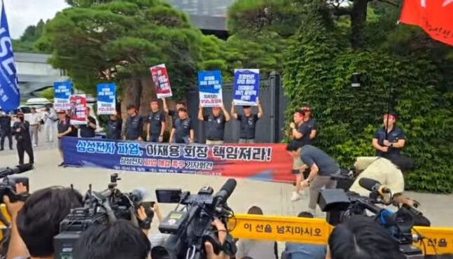 이들은 "우리의 요구는 과하지 않다"며 사측에 대한 비판과 함께 이재용 회장의 무노조 경영 폐기 약속 이행을 강력히 촉구했다.