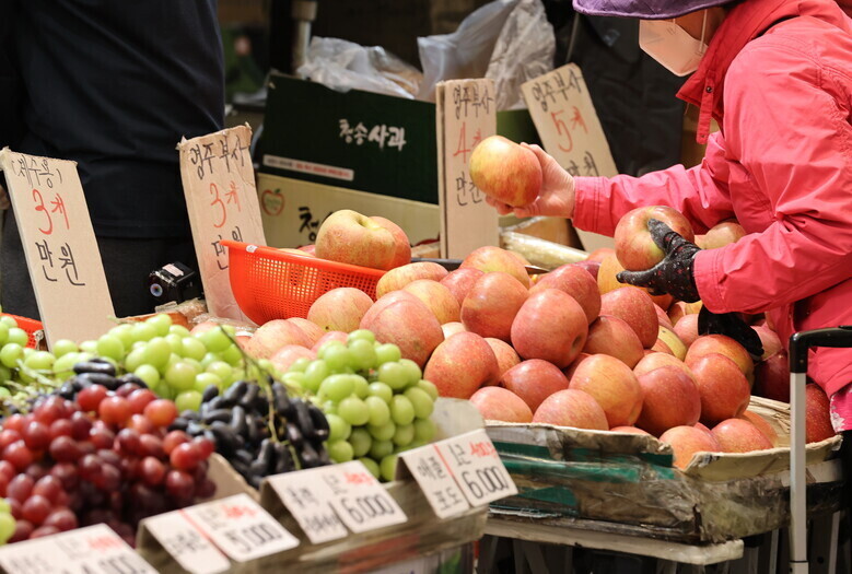 | 서울 한 전통시장에서 과일을 고르는 시민의 모습. (사진=연합뉴스) |