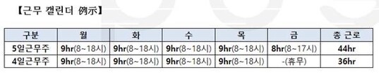 주 40시간 근로는 유지, 격주 단위로 금요일 휴무