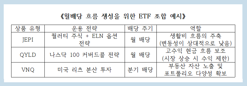 월배당 전략은 받는 금액의 크기보다도 흐름의 예측 가능성과 구조화 여부가 핵심이다. 매달 현금 흐름이 끊기지 않는 구조를 만들기 위해, 지급일이 서로 다른 상품을 혼합하여 조합할 필요가 있다.
