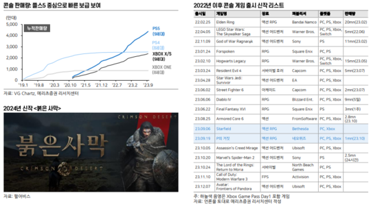 이효진 메리츠증권 연구원은 "관건은 누적 판매량이 될 것"이라며 "콘솔 보급 확대 및 PC 동시 출시로 인해 완성도 높은 게임이라면 판매량 1천만장 이상의 성과도 가능해진 시기"라고 판단했다.