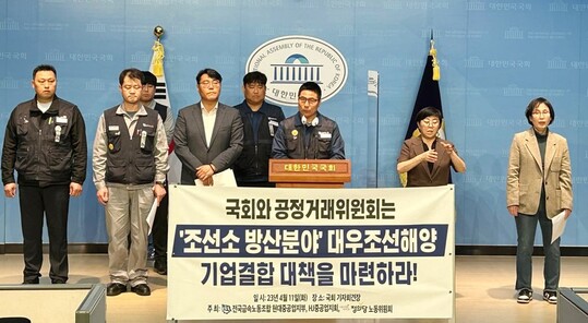 앞서 노조는 지난 11일 국회 정론과에서 열린 기자회견에서 "한화그룹의 대우조선해양 인수에 앞서 특수선 분야 공정경쟁 방안이 마련돼야 한다"고 밝혔다.