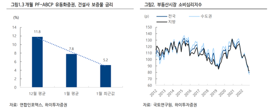 이와 함께 PF-ABCP 3 개월 건설사 보증물 금리도 안정세를 찾아가고 있다(2022 년 12 월 12% → 2023 년 1 월 5.2%).