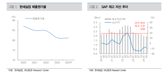 유정현 연구원은 "현재 주요 고객사들 중에 재고가 넘치는 곳은 없고 오히려 다소 부족한 곳이 대부분"이라며 "그런 와중에 동사처럼 설비를 줄여 놓은 곳들이 많아 4분기와 내년 1분기 오더를 가져갈 수 있는 곳이 많지 않은 것으로 파악된다"고 설명했다. 이에 한세실업에 대한 투자의견 매수와 목표주가 3만2000원을 유지했다.