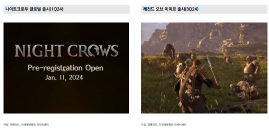 나이트크로우 글로벌은 내년 1월 사전 예약을 시작으로 2~3월 중 출시가 예상된다. 임희석 미래에셋증권 연구원은 나이트크로우의 2024년 일평균 매출 7억원을 전망했다.
