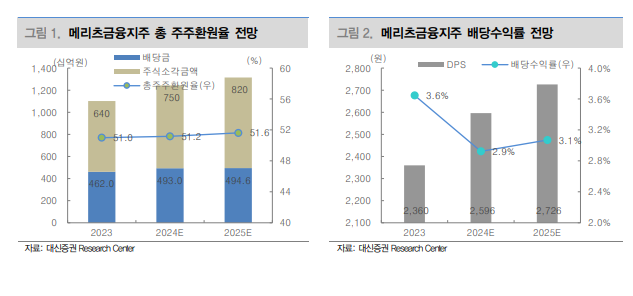 박혜진 대신증권 연구원은 "이익 증가가 곧 환원율 상승으로 이어질 것"이라며 "일간 40억원씩 매입하고 있는 것으로 파악되며 2분기 순이익이 추정치보다 2000억 원 가까이 상회하여 예상 환원율은 더 높아질 것"이라고 판단했다.