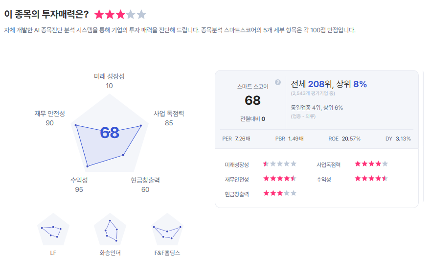 박현진 신한투자증권 연구원은 "최근 중국 사업 전개하는 소비재 기업들에게서 중국 소매 시장이 전년 대비 회복 중이라는 공통된 코멘트를 확인한 만큼 긍정적 시그널로 판단한다"라며 "ROE가 두 자릿수를 유지함에도 밸류에이션 레벨 10배 미만으로 타 해외 매출 높은 소비재 기업 대비 너무 낮아 섬유/의복 업종 내 최선호 의견을 유지한다"라고 말했다.