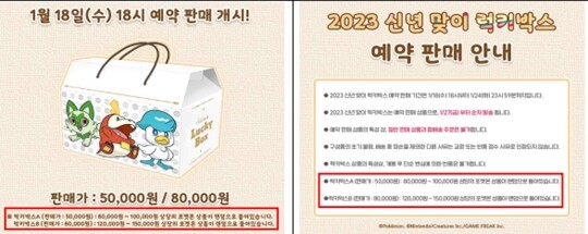 공정위에 따르면 포켓몬코리아는 2023년 1월 자사의 사이버몰 ‘포켓몬스토어’에서 ‘2023 신년맞이 럭키박스’라는 이름의 랜덤박스를 판매하면서 랜덤박스 후보상품(83개)에 대한 상품명, 제조국 등의 정보를 제공하지 않았다.