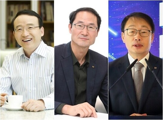 | 왼쪽부터 남중수 전 KT 사장, 박종욱 KT 대표이사직무대행, 구현모 전 KT 대표이사. (사진=연합뉴스, KT) |