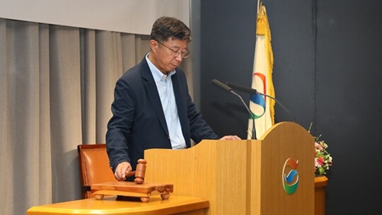 | 임병용 GS건설 대표이사 부회장이 11일 열린 임시 주주총회에서 의사봉을 두드리고 있다. (사진=GS건설) |