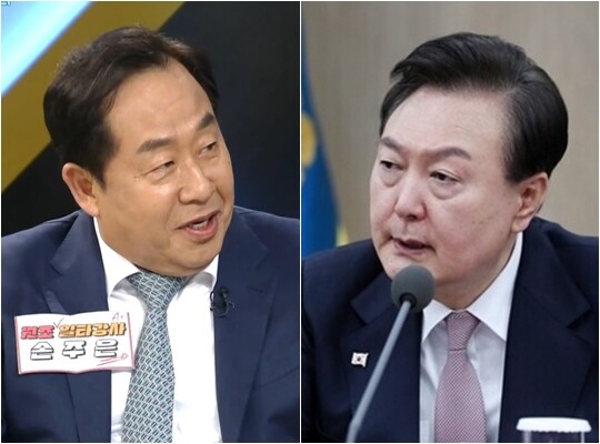 | 손주은 메가스터디 회장(왼쪽)과 윤석열 대통령. (사진=KBS2 '더라이브' 캡처, 연합뉴스) |