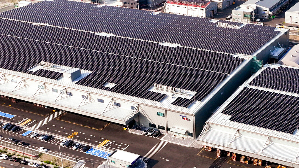 현대모비스 영남물류센터에 태양광 발전 설비가 설치되어 있다. (사진=현대모비스 제공) |