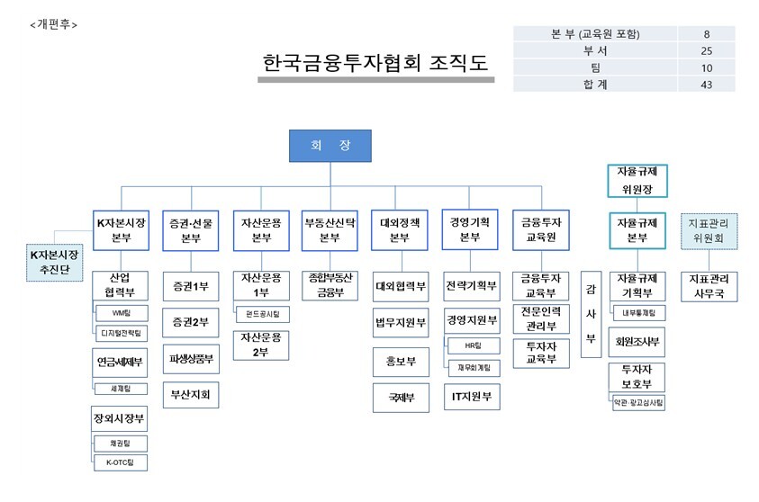 | 금융투자협회 개편후 조직도 (제공=금융투자협회) |