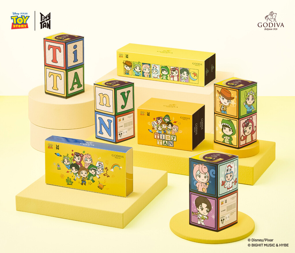 이번 고디바의 ‘타이니탄 as 토이 스토리 에디션’은 다양한 리패키징 제품으로 구성돼 힐링 콘셉트를 구현한다.