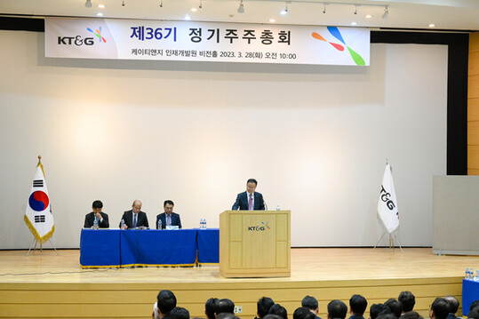 끝으로 백 대표는 "KT&G그룹은 향후 장기적 관점의 과감한 투자와 기술 혁신, 공격적인 해외시장 확대를 통해 주주가치와 구성원 가치를 극대화할 수 있는 글로벌 톱티어 기반으로 반드시 우뚝 설 것"이라고 덧붙였다.