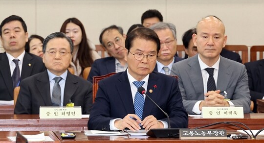 | 이정식 고용노동부 장관이 1일 국회 환경노동위원회 전체회의에 출석해 있다. 뒤는 증인으로 출석한 허영인 SPC그룹 회장과 이해욱 DL 회장. (사진=연합뉴스) |