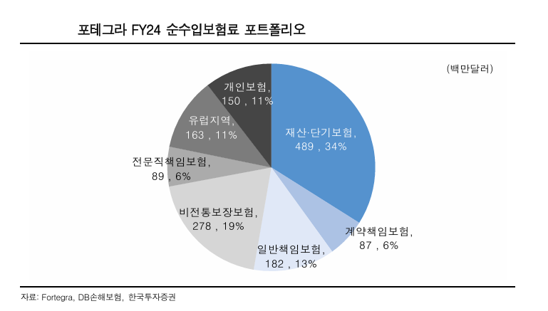 전배승 LS증권 연구원도 "포테그라의 24년말 기준 자본총계는 6억3000만 달러로 인수가격은 PBR 2.6배 수준에 해당한다"라며 "글로벌 주요 손해보험사 밸류에이션 대비 낮지 않으나 높은 성장성과 수익성 감안시 적정한 수준"이라고 평가했다.