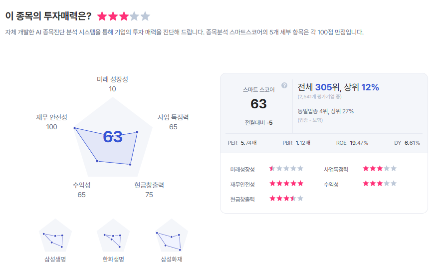 | DB손해보험 종목진단 (출처=초이스스탁) |